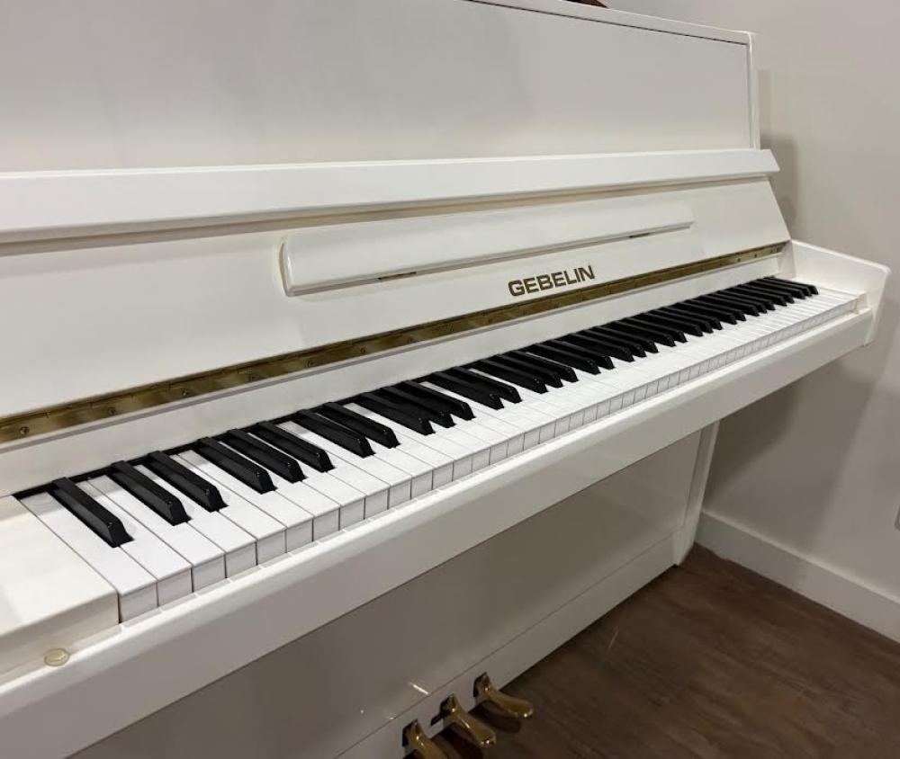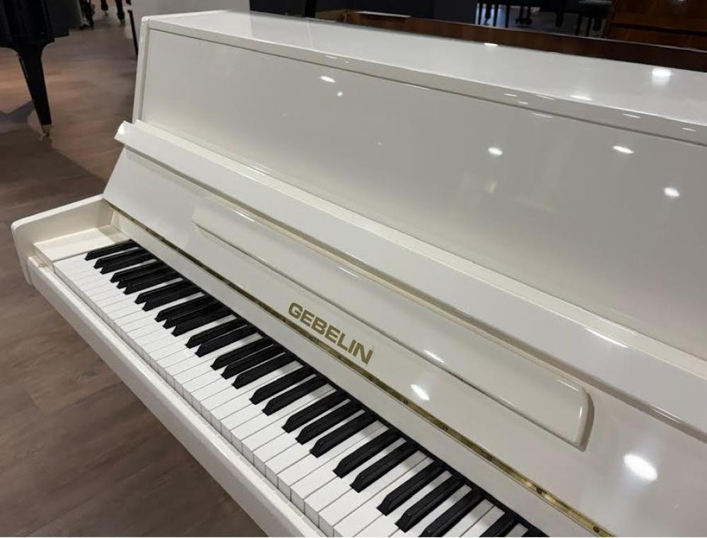 Piano droit d'occasion d'étude GEBELIN 108 laqué blanc