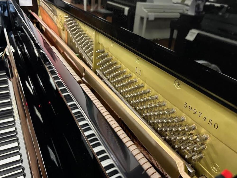 Piano d'occasion Yamaha U1 noir verni révisé, règlé et accordé. Excellent pour les apprentis pianistes comme pour les pianistes avertis.